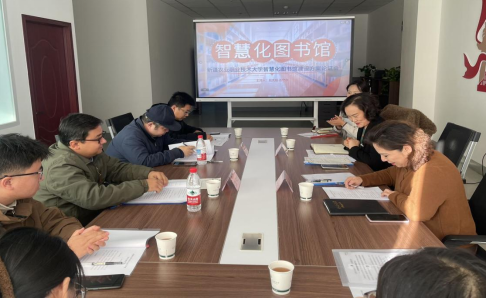 会议开始,馆长吉文丽介绍新图书馆信息建设要点,强调图书馆作为校园文化地标与知识枢纽的重要意义,以及智慧化转型对学校职业本科建设的支撑作用。随后,项目团队围绕新图书馆信息建设建设背景、现存问题、目标规划及核心内容进行讨论交流,提出将新馆打造为资源数字化、服务智慧化、空间智能化、管理科学化的现代化智慧图书馆。