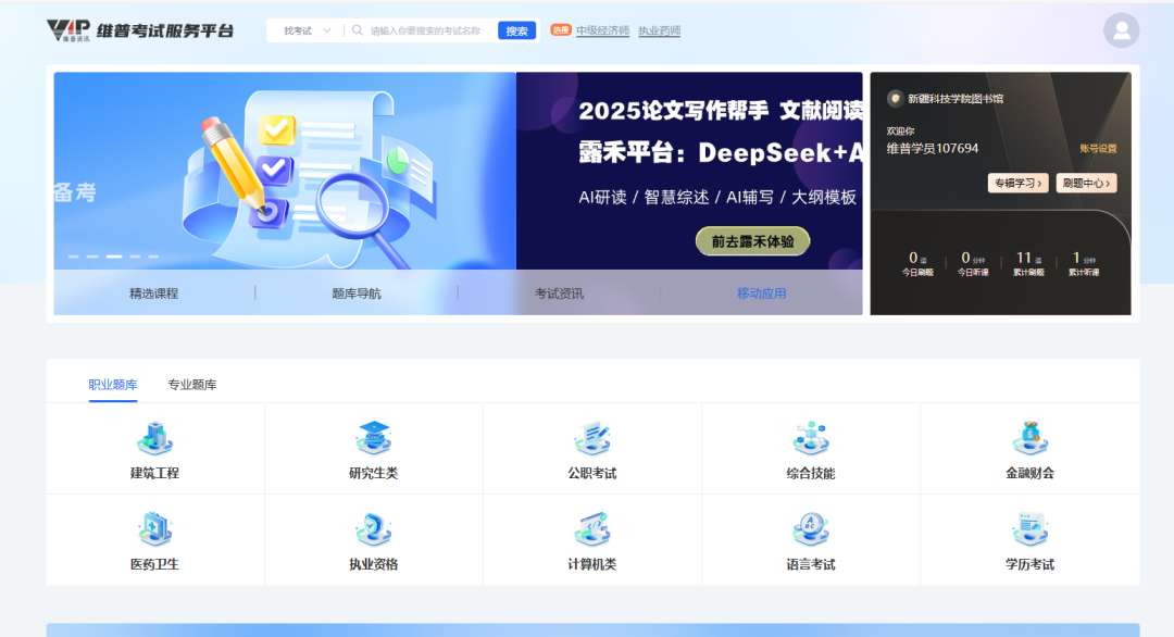 2025届高校毕业生规模再创新高,就业竞争白热化!“多证傍身”已成求职核心竞争力,但题库繁杂、刷题盲目、考点模糊等痛点让备考效率大打折扣?别慌!新疆农业职业技术大学专属维普考试服务平台重磅升级!融合AI智能备考技术与双题库核心资源,打造“精准定位→科学刷题→错题突破→学情分析→全真模拟”全链条备考方案,帮你告别无效盲刷,进阶高效备考,轻松攻克考证难关!讲座专属互动礼品�� !干货+福利双收,快约同学一起赴约!