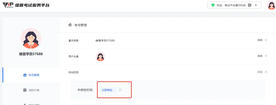 ③若机构添加了经纬度位置定位,机构用户在机构所在地理位置范围内,可以通过“维普考试”App绑定页面的“定位绑定”功能实现机构绑定。